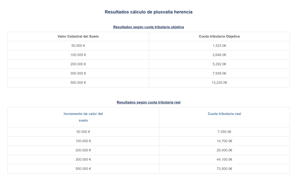 - Ejemplo de cálculo de plusvalía de herencia a través del método objetivo:
